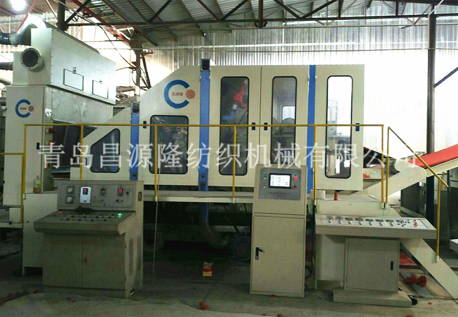 6.CYLZC-针刺机:该机仿德国DL公司产品设计,新型钢件结构,活动梁采用铝合金制成,针床梁、主轴都经调质、回火做定性处理,剥毛板、针床梁用蜗轮箱升降,方便调节刺针深度,针板为气压控制,电脑数控布针,进出辊、剥棉板和托棉板镀铬,连杆采用球墨铸铁加工成型。导向轴用45#钢锻打,经车麽热处理精加工。