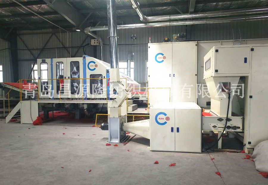 2. CYLKS-开松机:开松各种捆包纤维,按比例由电子秤进行称量,均匀平铺在混棉帘上。各种不同纤维被放入水平输送帘,经压棉辊和对辊罗拉喂入,经高速打手开松后由输棉风机送到下道工序。