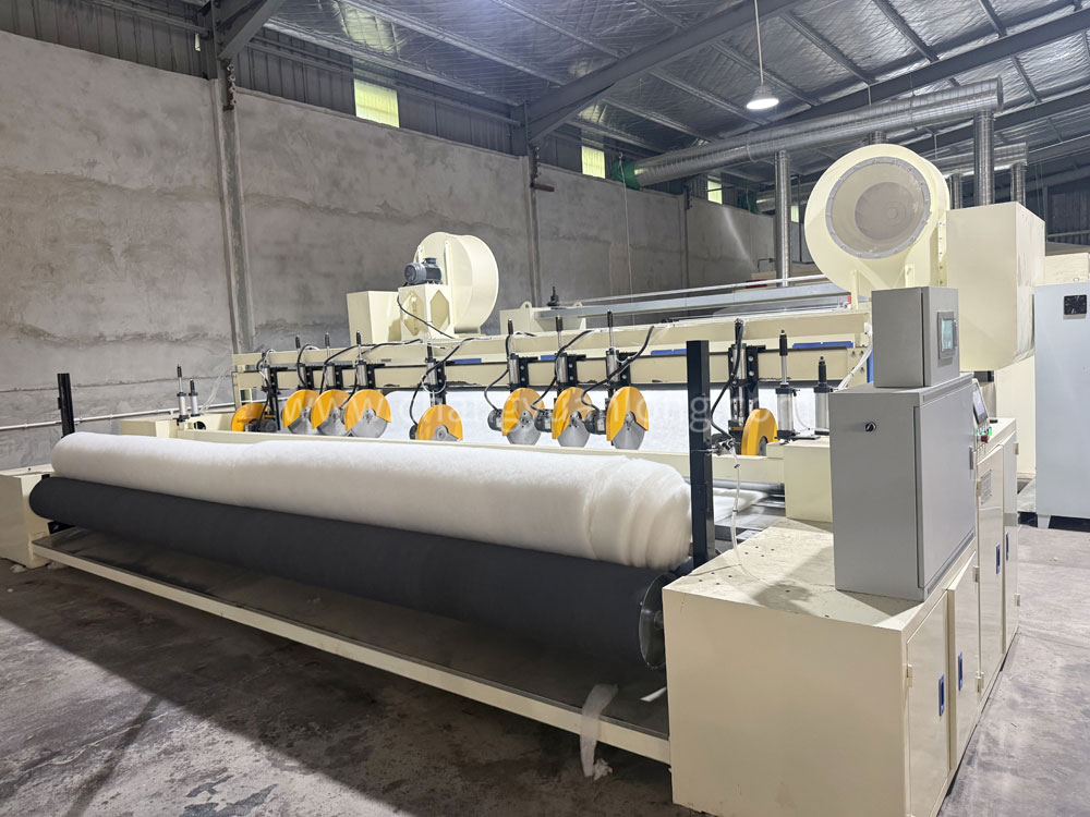 无胶棉设备用途:填充料生产线,适用于床上用品、服装家具、沙发高级填充料等。