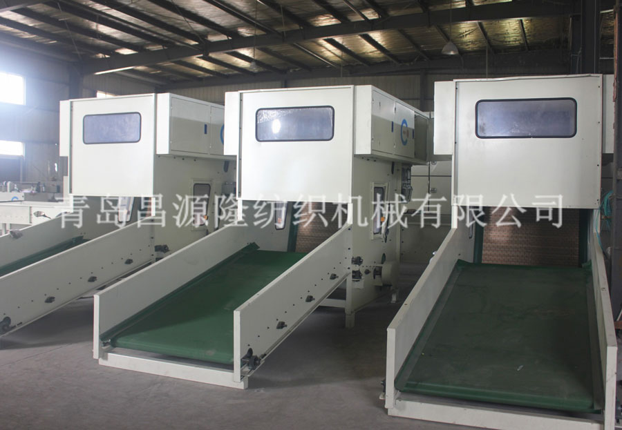 1. CYKB-1200 开包机:开松各种捆包纤维,按比例由电子秤进行称量,均匀平铺在混棉帘上。各种不同纤维被放入水平输送帘,经压棉辊和对辊罗拉喂入,经高速打手开松后由输棉风机送到下道工序。