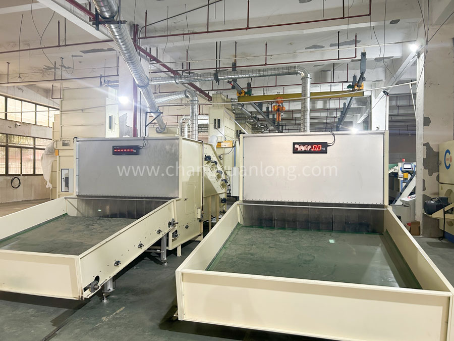 混料机:对各种经过初步开松的纤维进行充分的混合及存储,达到连续生产的目的。