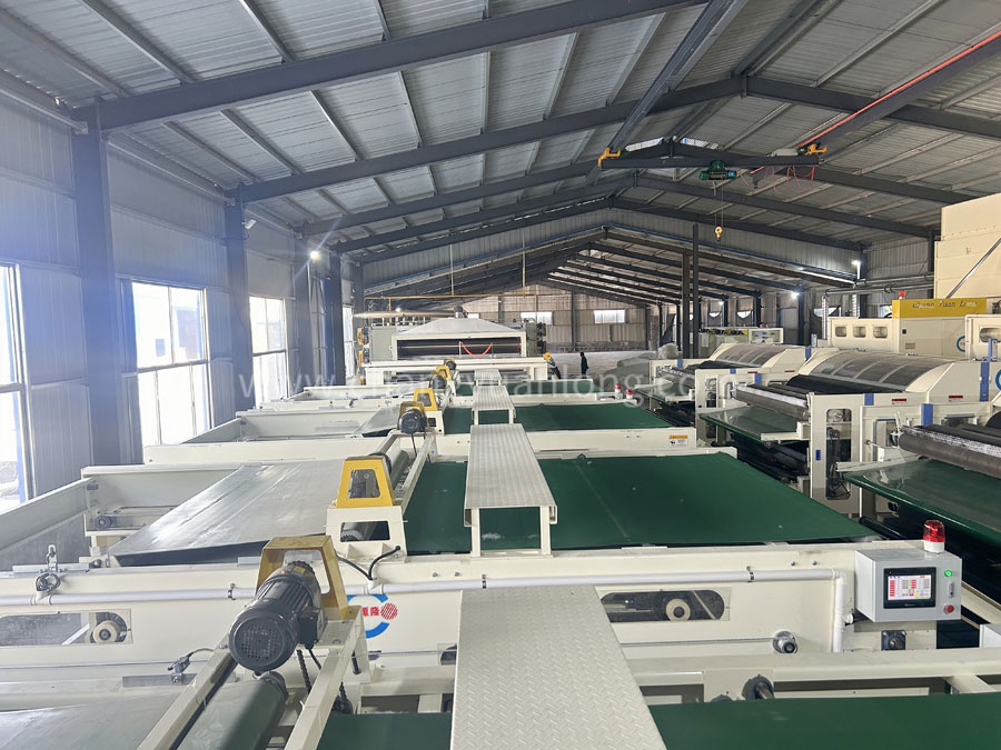 铺网机可增加棉网厚度和宽度,改变棉网纤维排列方向,改善棉网纵横向强力比。