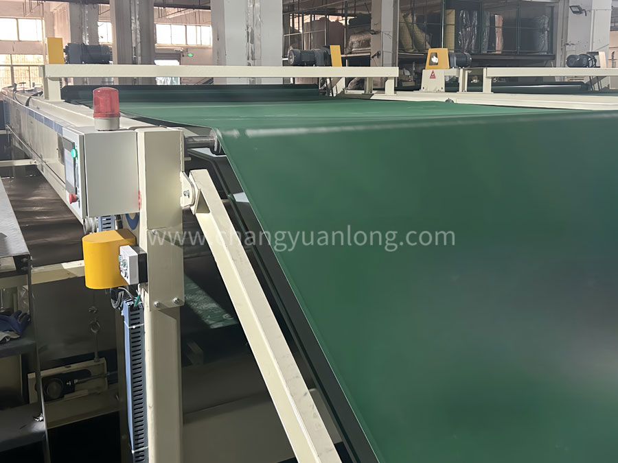 ?工作原理:通过移动小车将棉网夹持前进铺叠在底帘上,由底帘不断地将一定厚度的棉网输入到下一道工序。