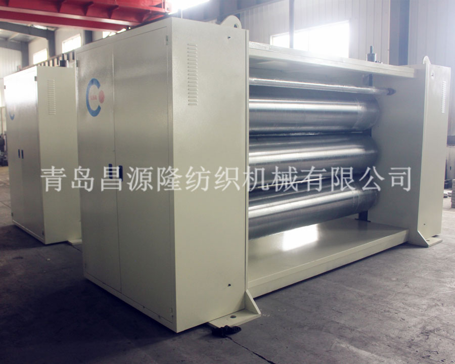 烫光机:烫光机(压光机、热轧机)主要用于各种绒类织物如:晴纶毛毯、人造毛皮、呢绒、精仿毛绒等产品的后整理表面烫光,经烫光处理后的织物表面彭松柔软,绒毛顺直光亮,可与天然织物相媲美。