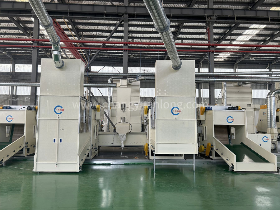 开松各种等级捆包纤维经电子秤进行称量,使不同纤维配比准确,均匀平铺在混棉帘上,供给开松机使用。