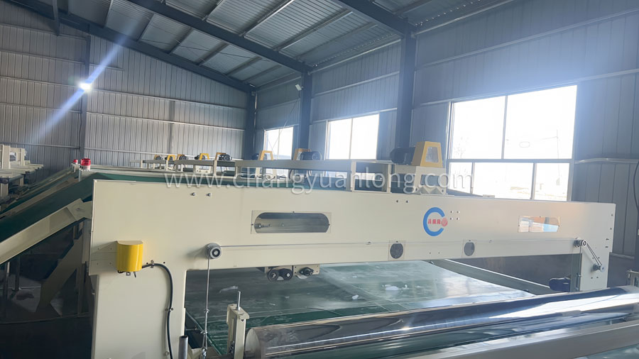 ?工作原理:通过移动小车将棉网夹持前进铺叠在底帘上,由底帘不断地将一定厚度的棉网输入到下一道工序。