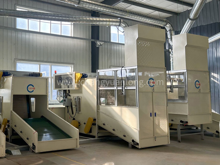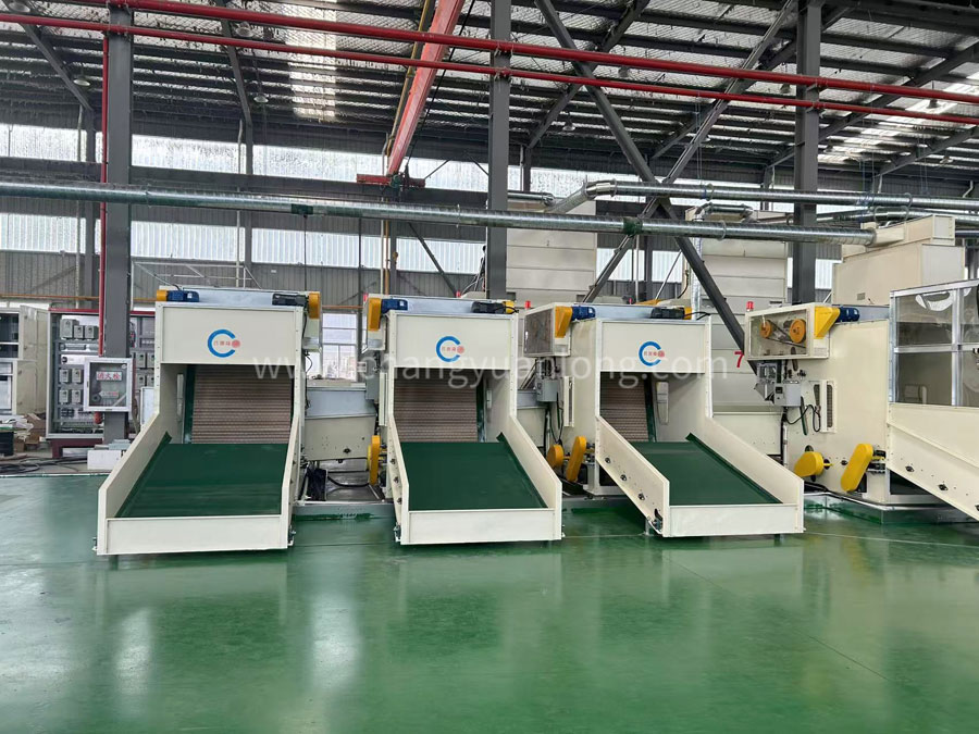 ?工作原理:开松各种等级捆包纤维,定量喂入,使不同纤维配比准确,混合均匀,供下一道工序使用。