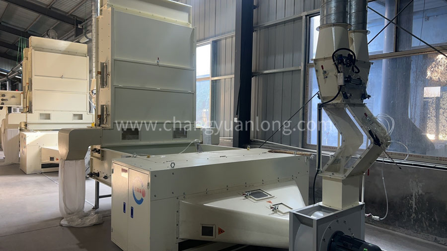 (4)储棉箱带强磁铁除金属装置,输棉风机连接PVC输棉管道,光滑封闭,不挂棉不漏风。