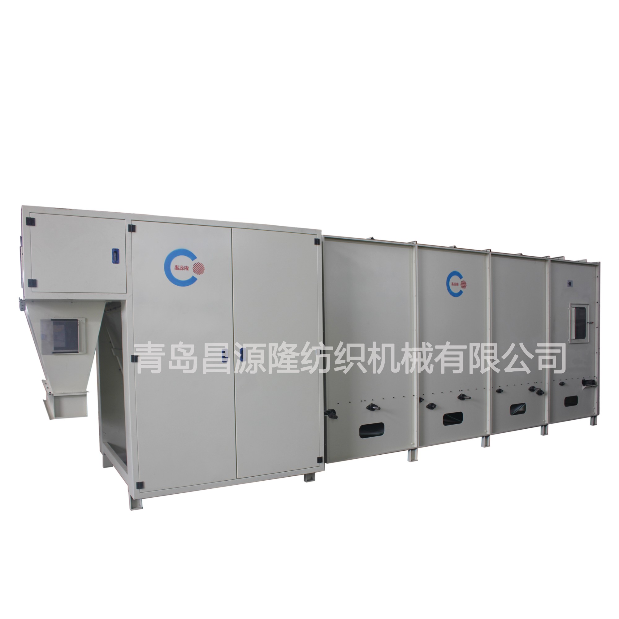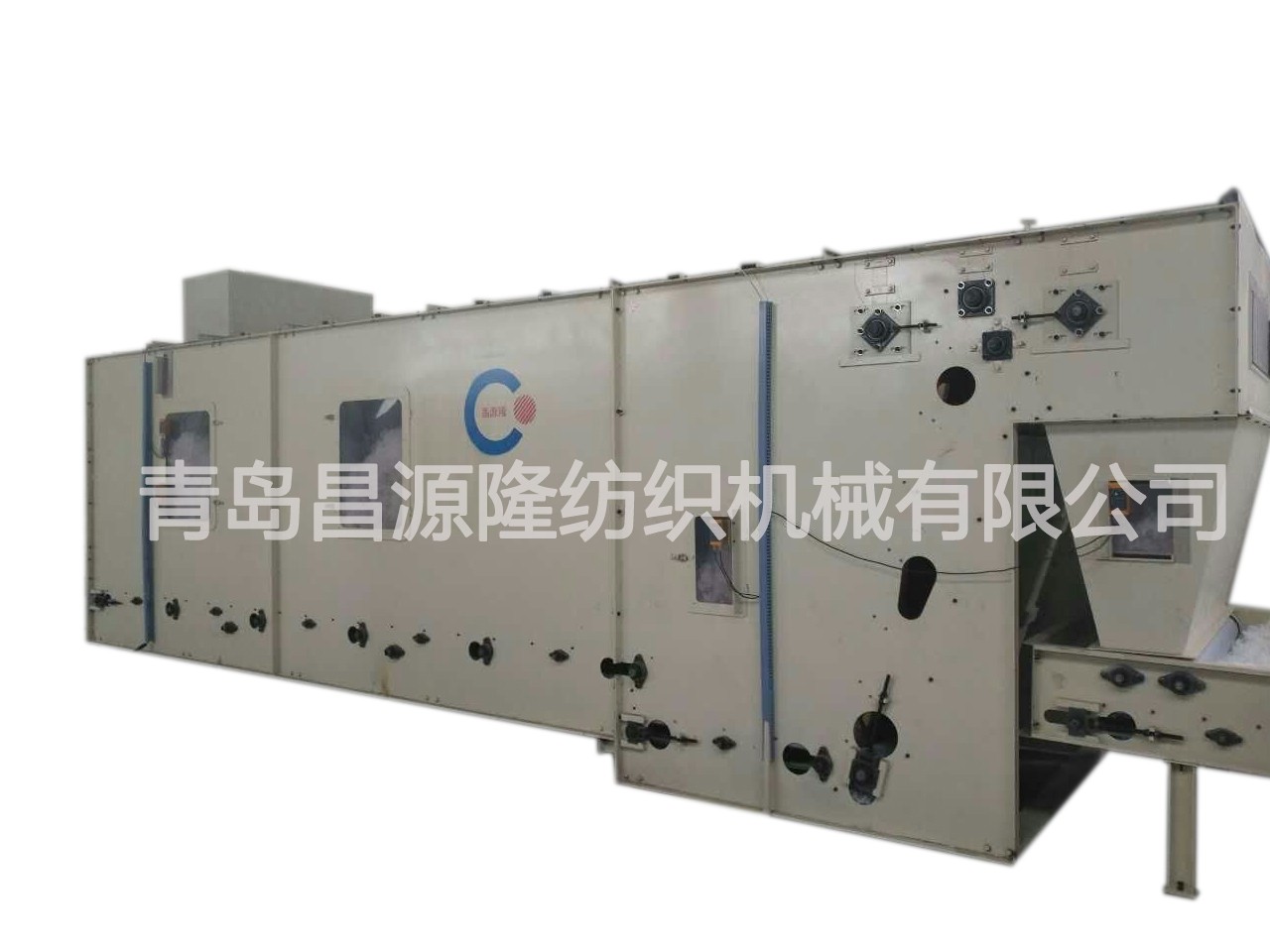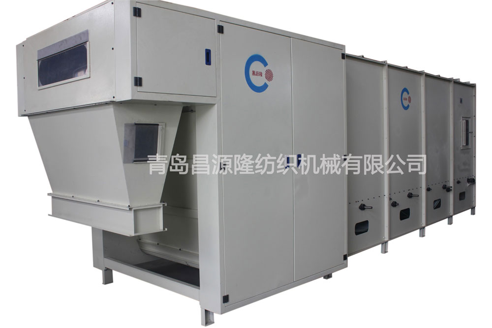 大仓混棉机:对各种经过初步开松的纤维进行充分的混合及存储,达到连续生产的目的。